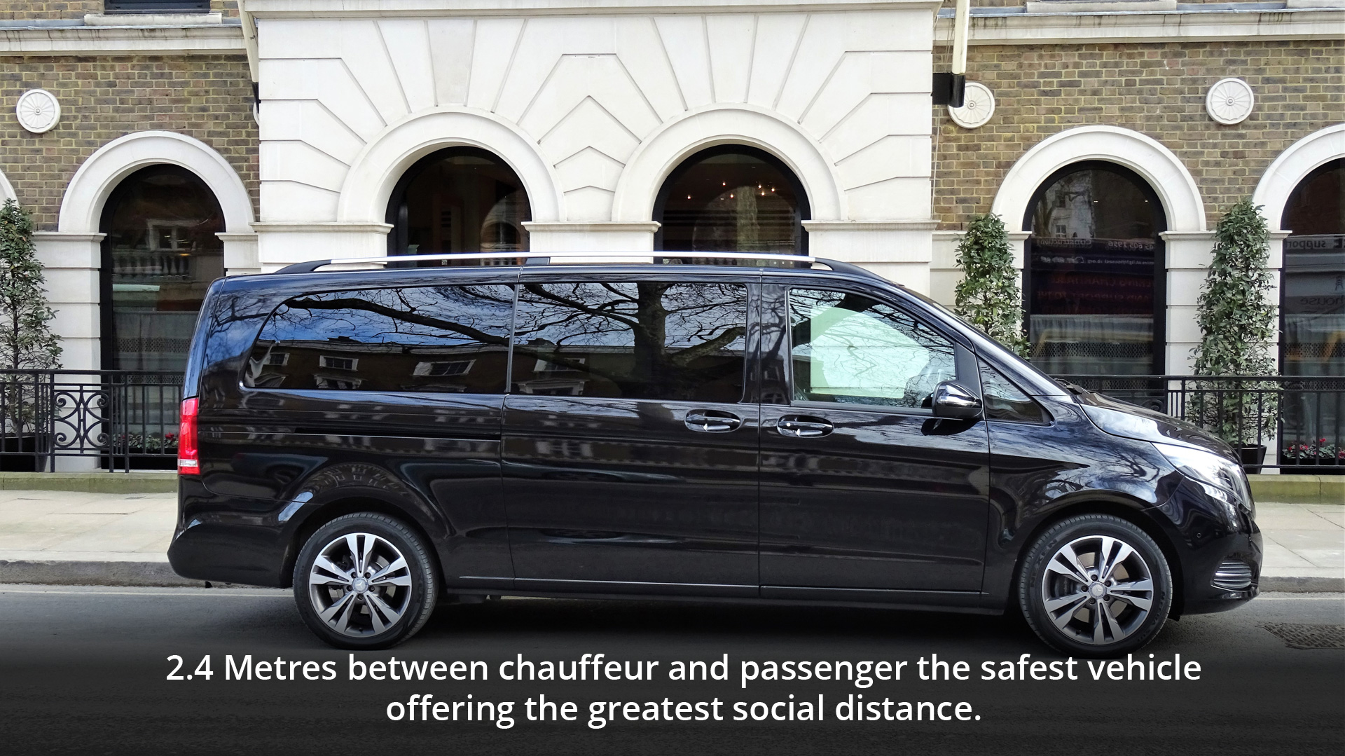 The Mercedes V class is the only vehicle that is consistent with UK government guidelines on social distancing. Rear seated passengers are separated from the driver by 2.4 meters.